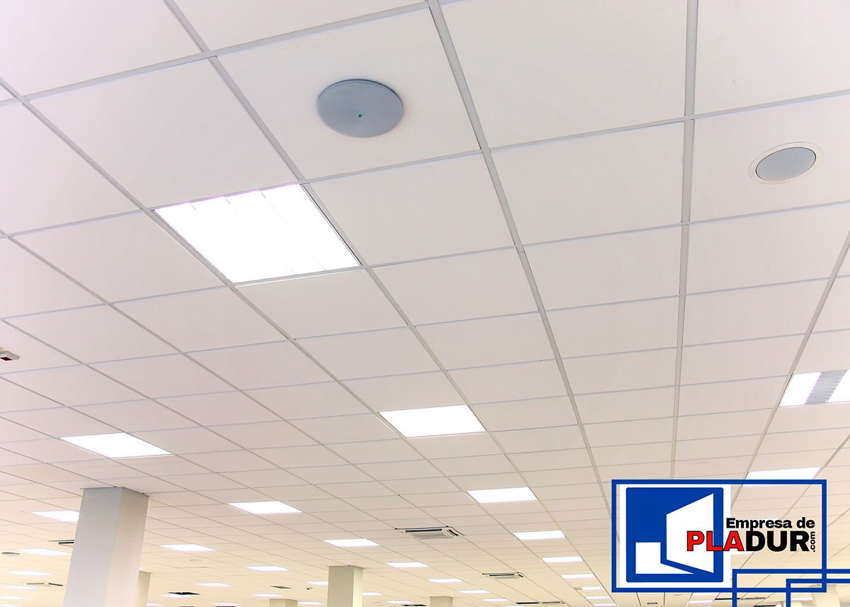 Es el tipo de techo acústico más habitual utilizado en locales, oficinas, colegios, etc. Se compone de placas acústicas para techos modulares que se colocan sobre una perfilería metálica vista “normalmente blanca (T15 o T24)”, lo que permite desmontarlas fácilmente y acceder al forjado e instalaciones eléctricas, climatización, etc.
