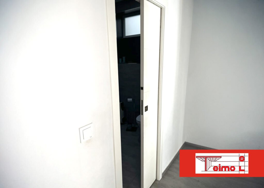 Ejemplo de Puerta corredera en tabique de pladur ya instalada y terminada